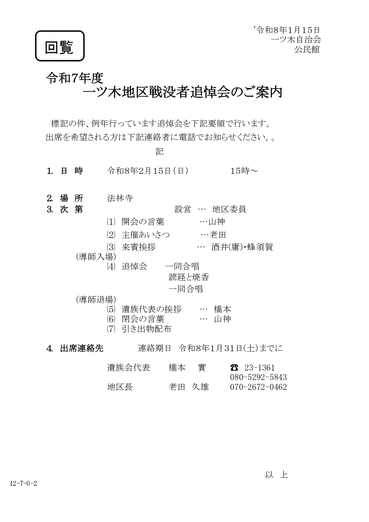 【連絡】2026/2/15 戦没者追悼会のご案内
